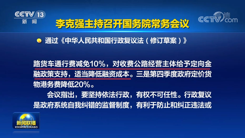 2022/09/26四季度起貨車過路費(fèi)減免10%