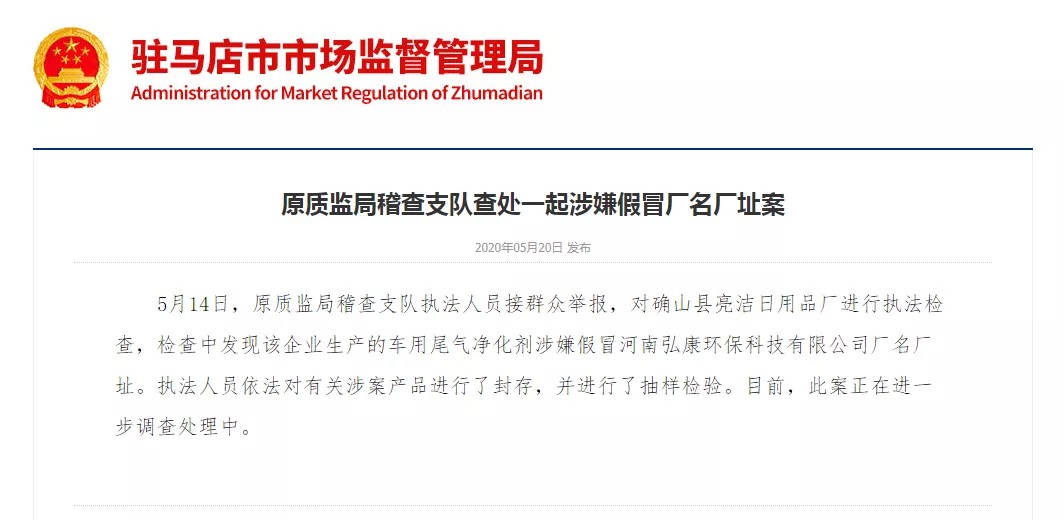 2020/05/25駐馬店市市場監(jiān)督管理局打假出重拳…
