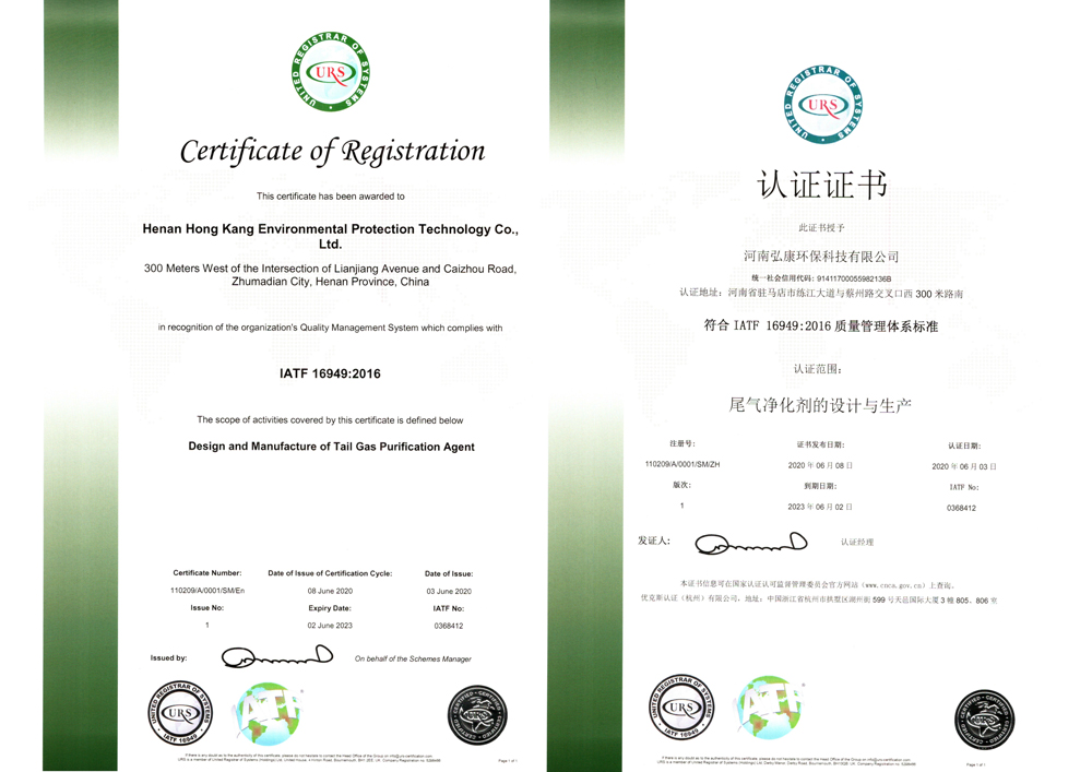 2020/07/06河南弘康環(huán)保獲得IATF 16949:2016…